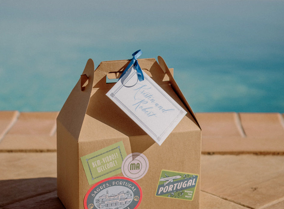 For Ali and Maria’s destination “I dos” in the Algarve, we piloted a first-class paperie experience that paid tribute to the historic setting, their playful personalities and their epic ocean-spanning, continent-crossing journey to tie the knot.