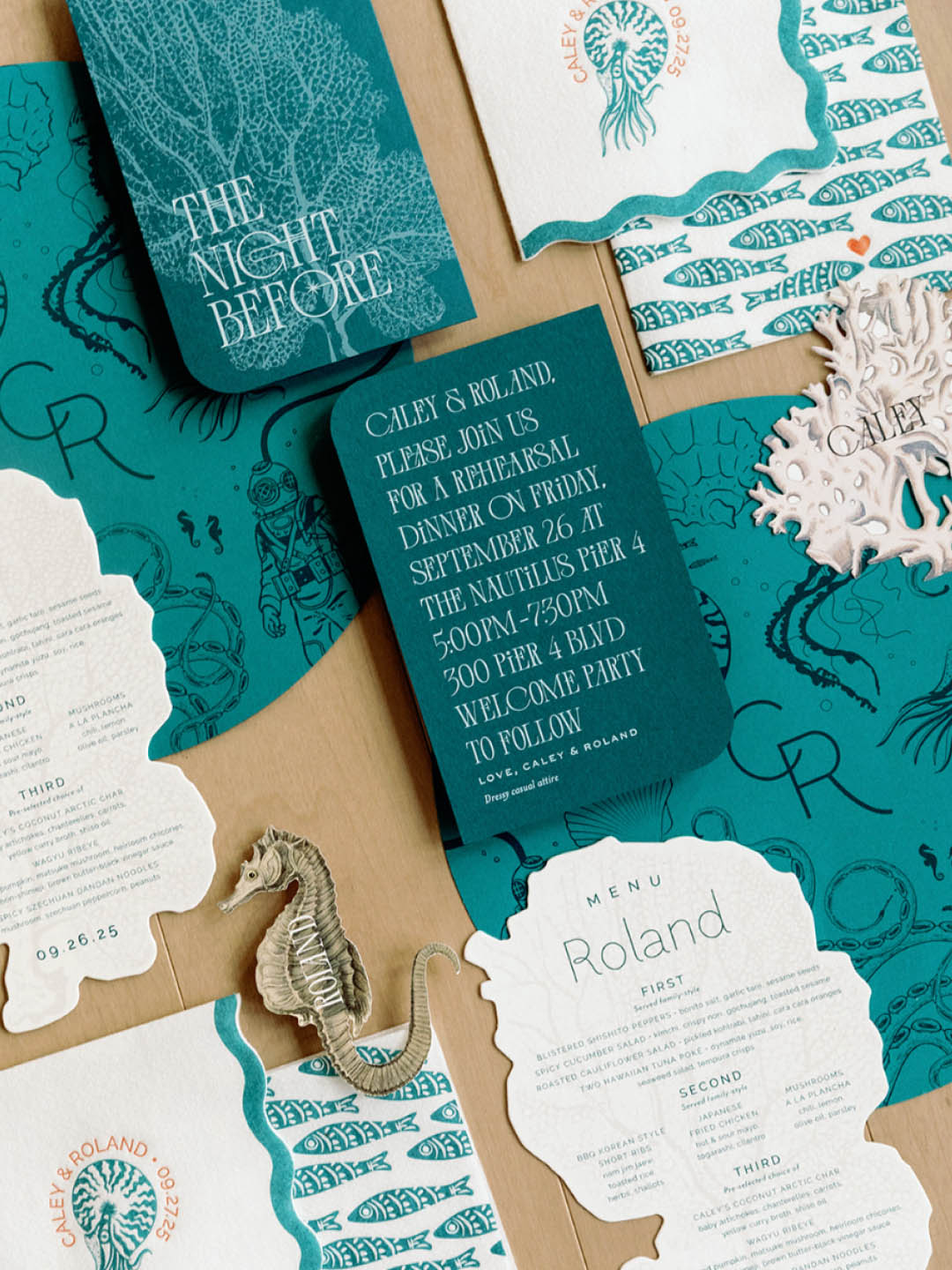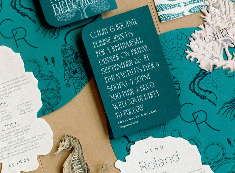 When avid photographers and artistic souls Caley and Roland wanted to look at wedding stationery through a different lens, they trusted Cheree Berry Paper & Design to embrace their unique POV and push the boundaries of wonder and whimsy. Balancing the couple’s free-spirited nature and detailed focus through masterful typography and an eclectic visual menagerie, we gave rise to a design dreamscape befitting their contemporary enchanted forest.