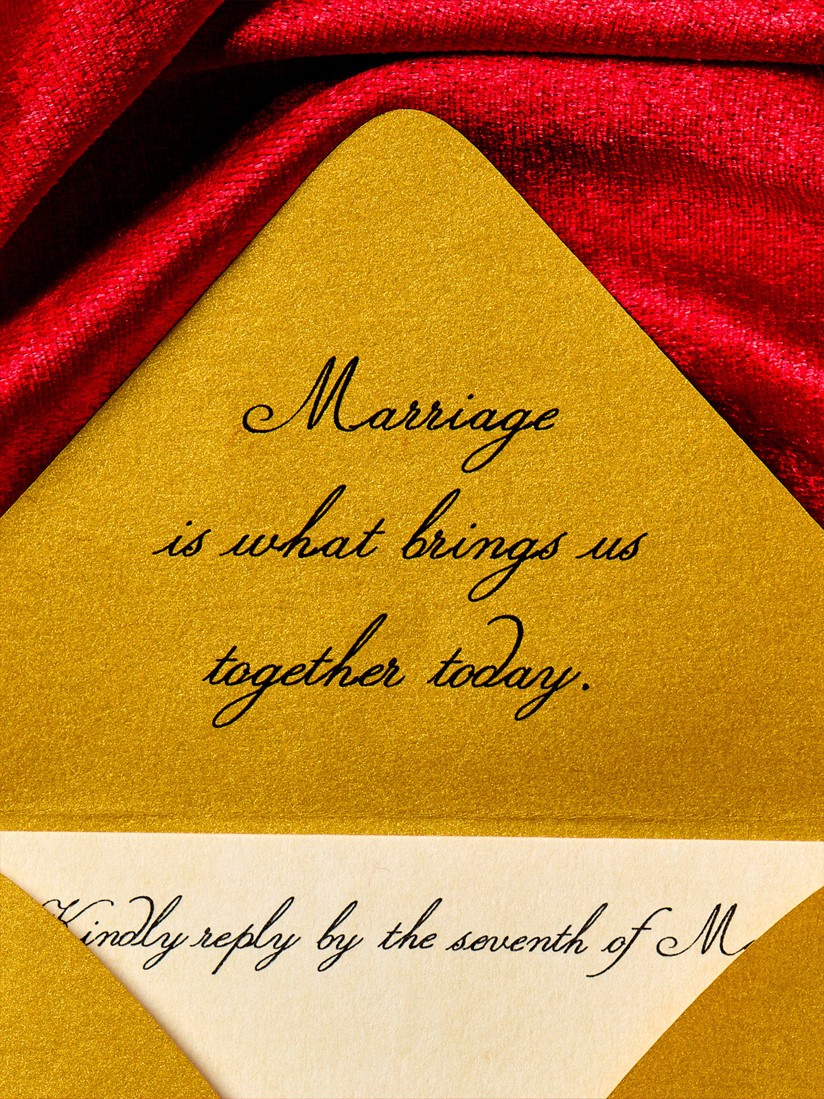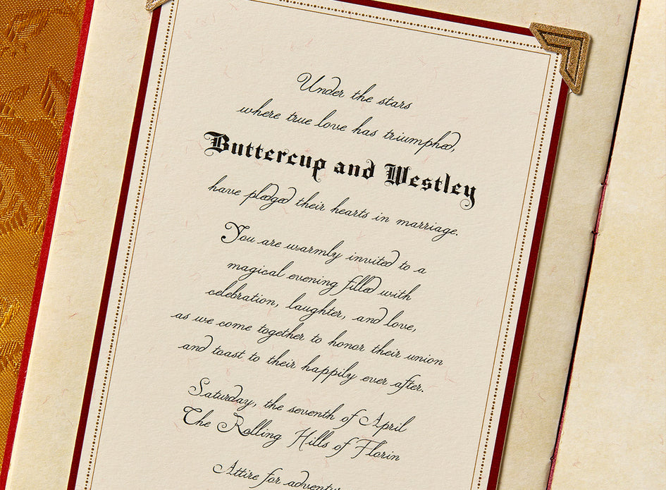 Ink 1, ShapeThis is a vintage fairytale-inspired wedding invitation suite with a rich red, cream and gold color palette. It features elegant calligraphy and classic serif fonts, blending romantic script with formal text. The design includes hand-drawn couple illustrations and a detailed vintage-style map, evoking a medieval, noble theme. The suite contains layered cards and envelopes with decorative borders and flourishes, combining poetry, love letters and storytelling elements.