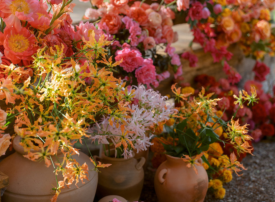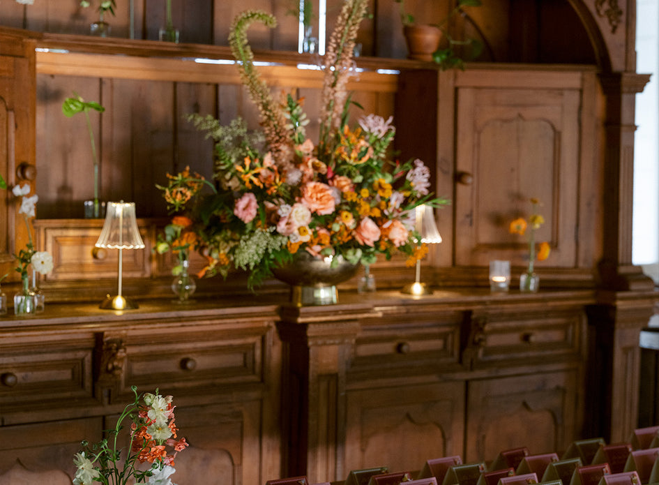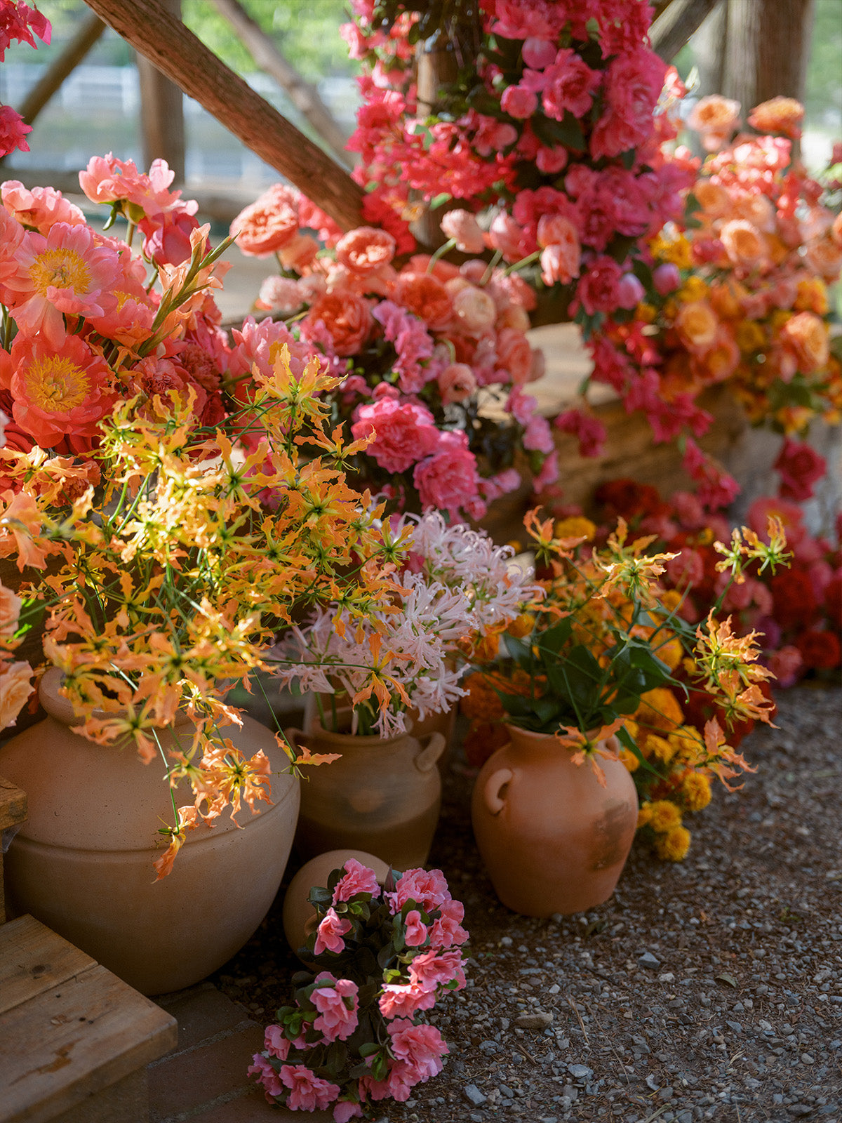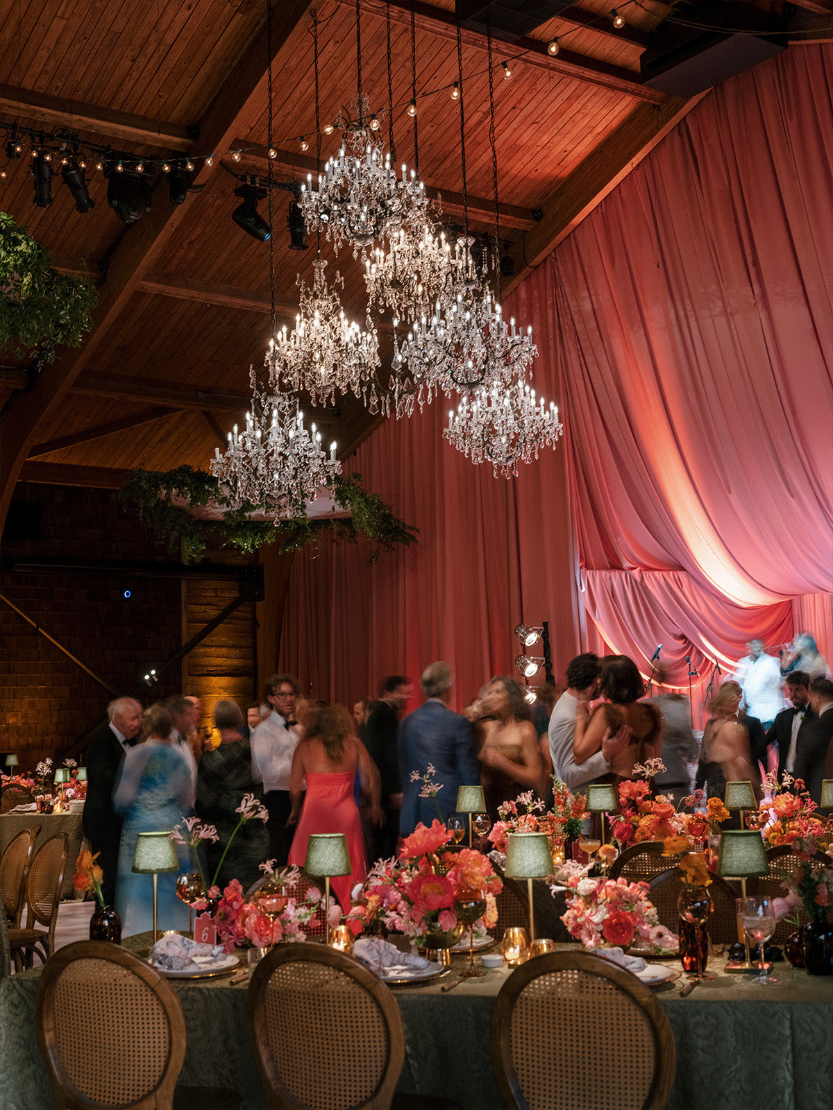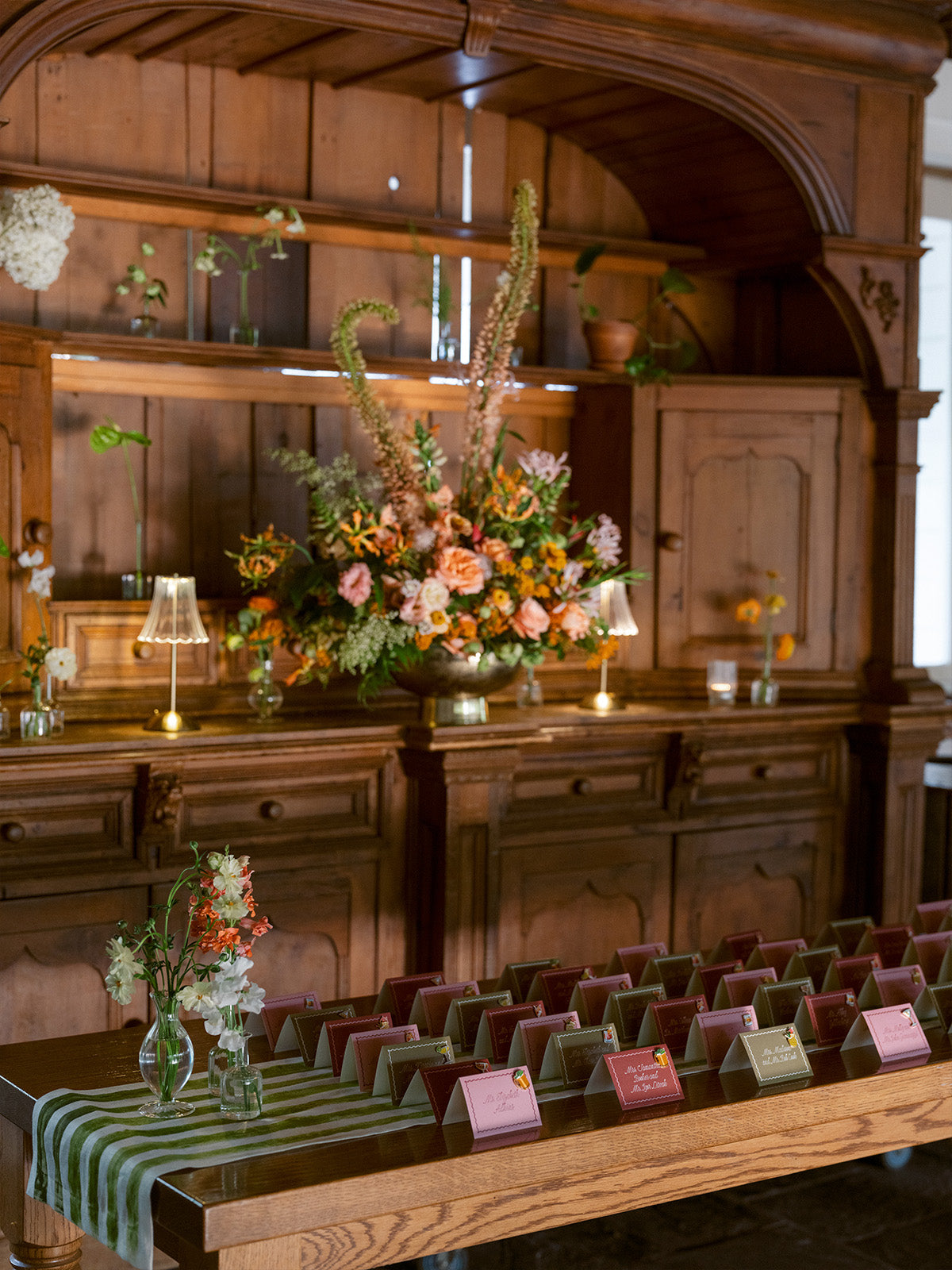 Commemorative enamel pins attached to escort cards, the mutt of honor/ boozy bar(k)tender gracing cocktail napkins, custom matchboxes that turned up the heat of the color palette – each of our designs for the big day itself was as intentional, eclectic and enviably cool as Keller and Mike.