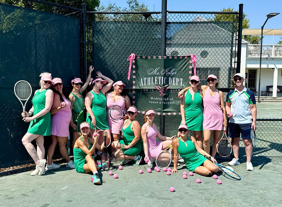 From putting on a clinic in coordinated dressing at the group tennis lesson, to the poolside “etiquette” antics led by Headmistress Diana, to the Champagne & T-Pain pregame, this 40th was an unforgettable lesson in living your best midlife.
