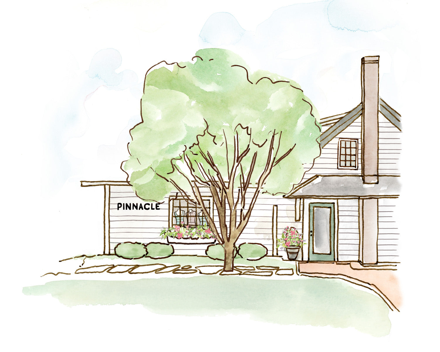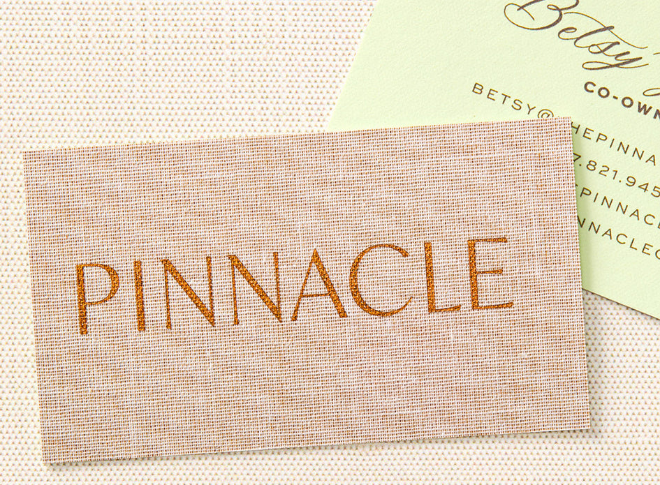 Having worked as our East Coast account manager for six years, Betsy Goldin knew she could entrust Cheree Berry Paper & Design with the branding for her new women’s clothing boutique, Pinnacle. After an initial exploration, we arrived at a primary logotype, a collection of supporting marks and a two-level font system that bridged uptown sophistication and small-town ease – a subtle embodiment of the Northwest Connecticut locale. Together with a palette of pistachios and warm browns accented by a luxe textural quality, we outfitted a visual style as tasteful as Betsy, co-owner Caroline Klein and the coveted curation found inside their cedar-shake store.