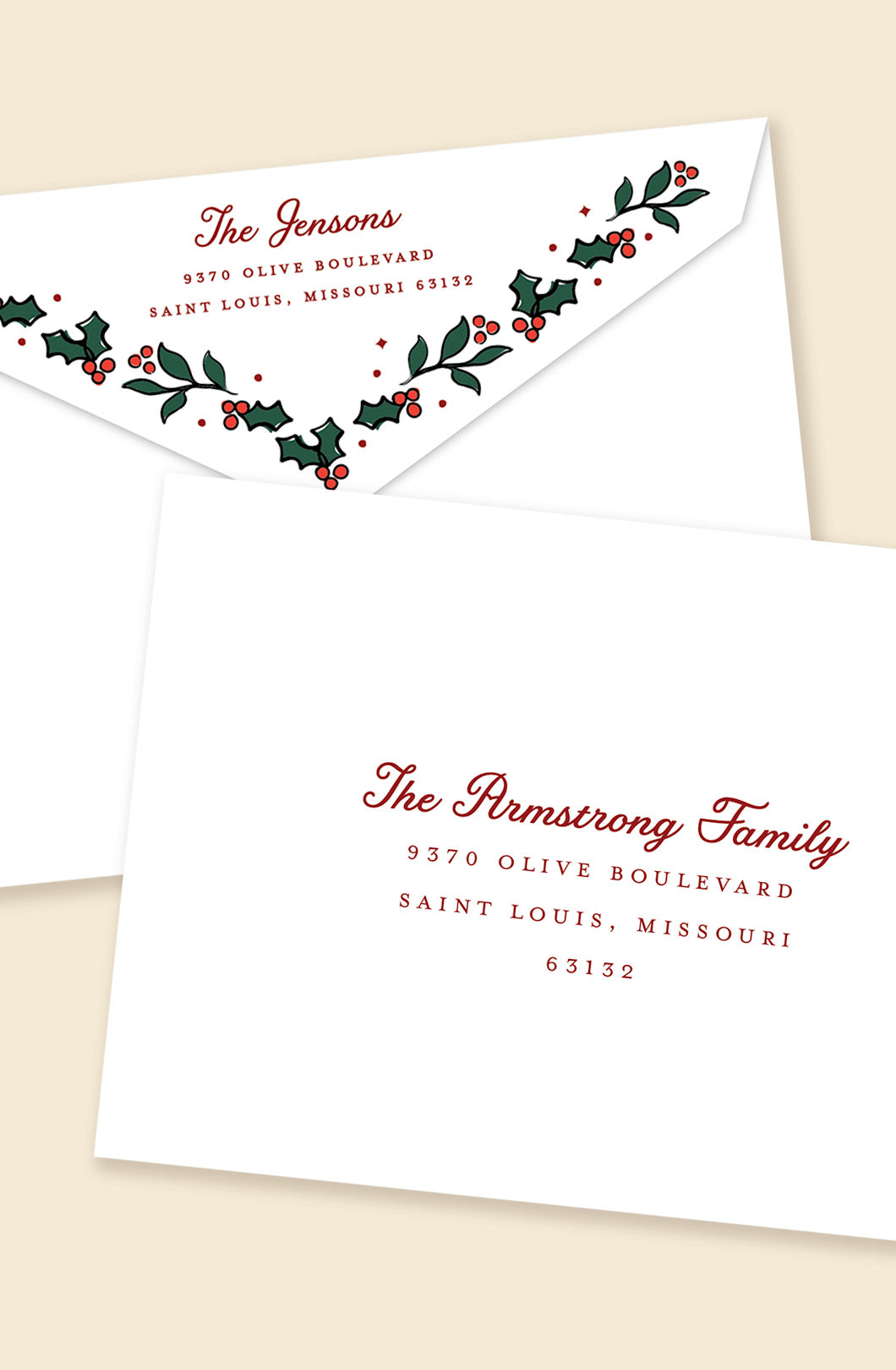 Return Address: Printed on the flap – plus other fun envelope design touches! – included in your card order