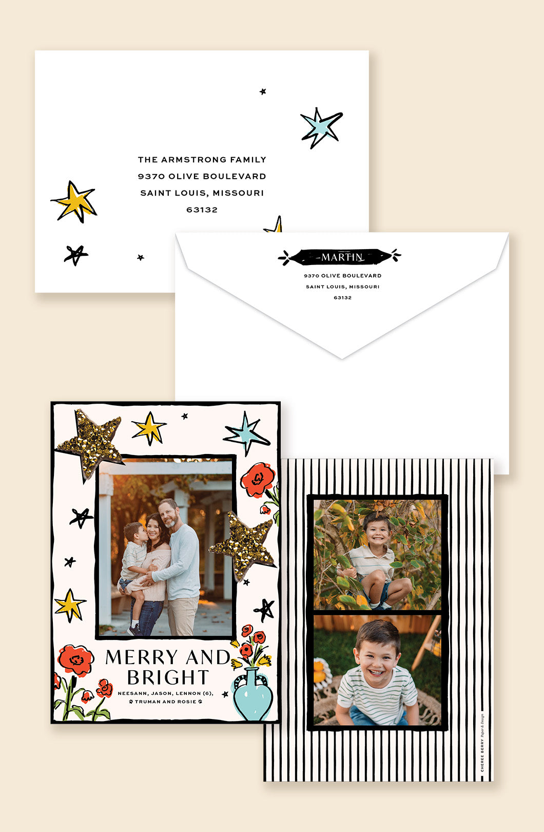 From the acclaimed creative minds of Cheree Berry Paper & Design comes a collection of luxury holiday cards designed to deliver joy—one envelope at a time. Whether you're sharing highlights of the year, announcing a new address, or simply sending seasonal cheer, these cards blend modern paper design with playful wit and standout detail. Every order includes a digital proof reviewed by a real human designer, plus return and recipient address printing for a polished, stress-free send-off. With options like real ribbon bows, custom artwork, and personalized messages, your holiday mail has never looked—or felt—so thoughtfully crafted.